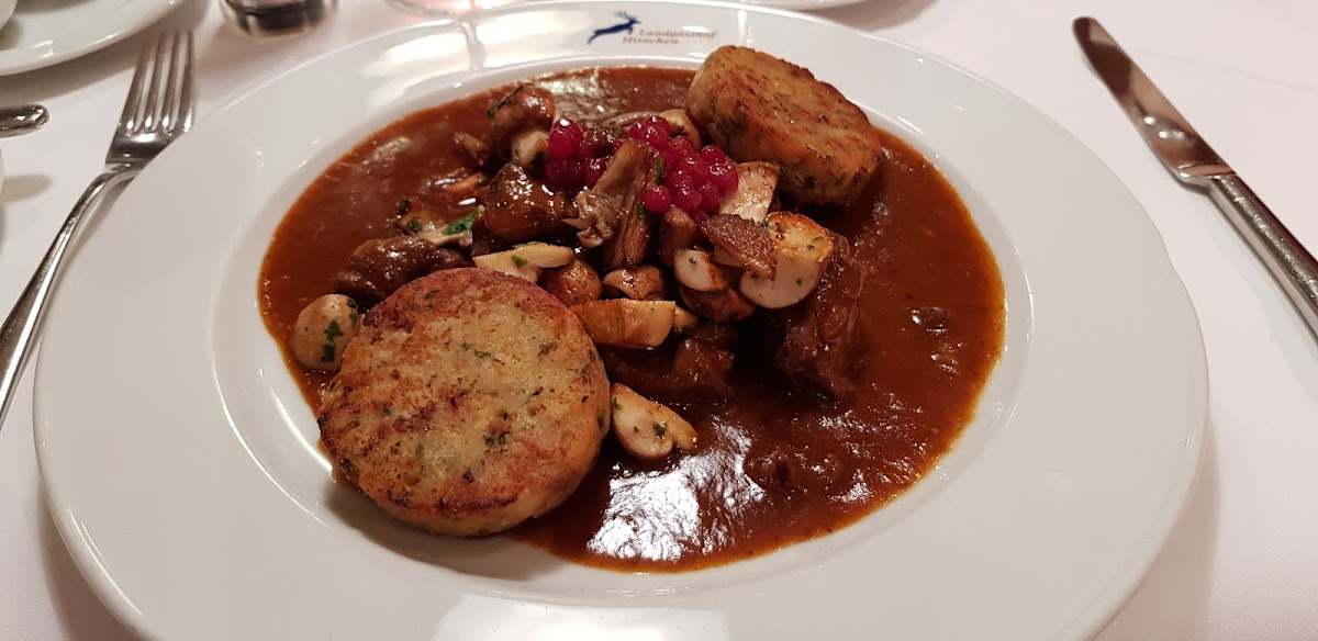 One of the restaurant’s highlights is its signature Onion Soup, a rich and hearty dish that offers the perfect balance of flavors. The deep, savory broth combined with caramelized onions creates a soul-warming meal that sets the tone for any dining experience. For those seeking something a bit more robust, the Rehgulasch (venison goulash) is an absolute must-try. This slow-cooked dish bursts with tender meat, perfectly complemented by a rich sauce that has been expertly seasoned to enhance the natural flavors of the venison.