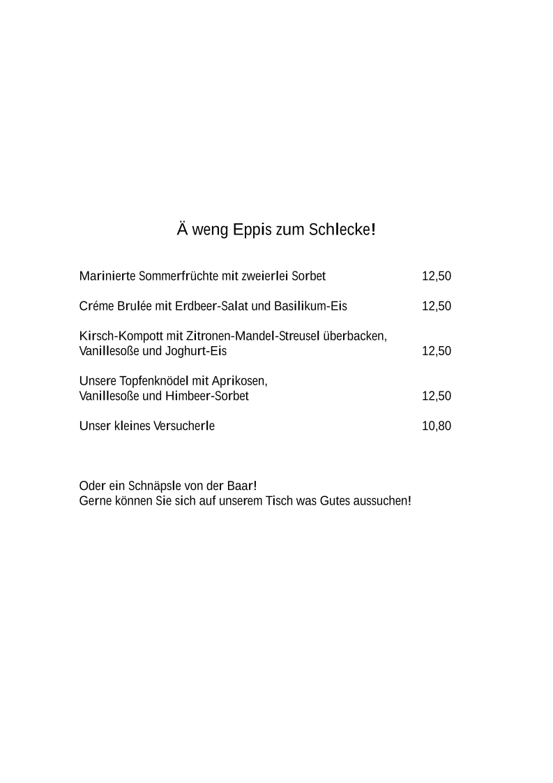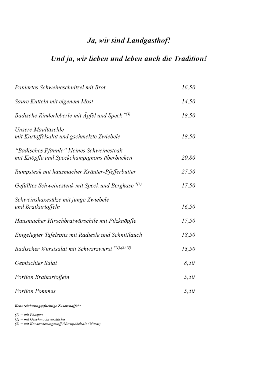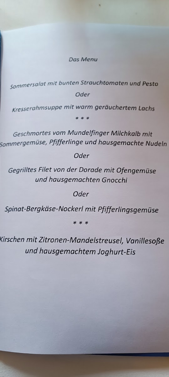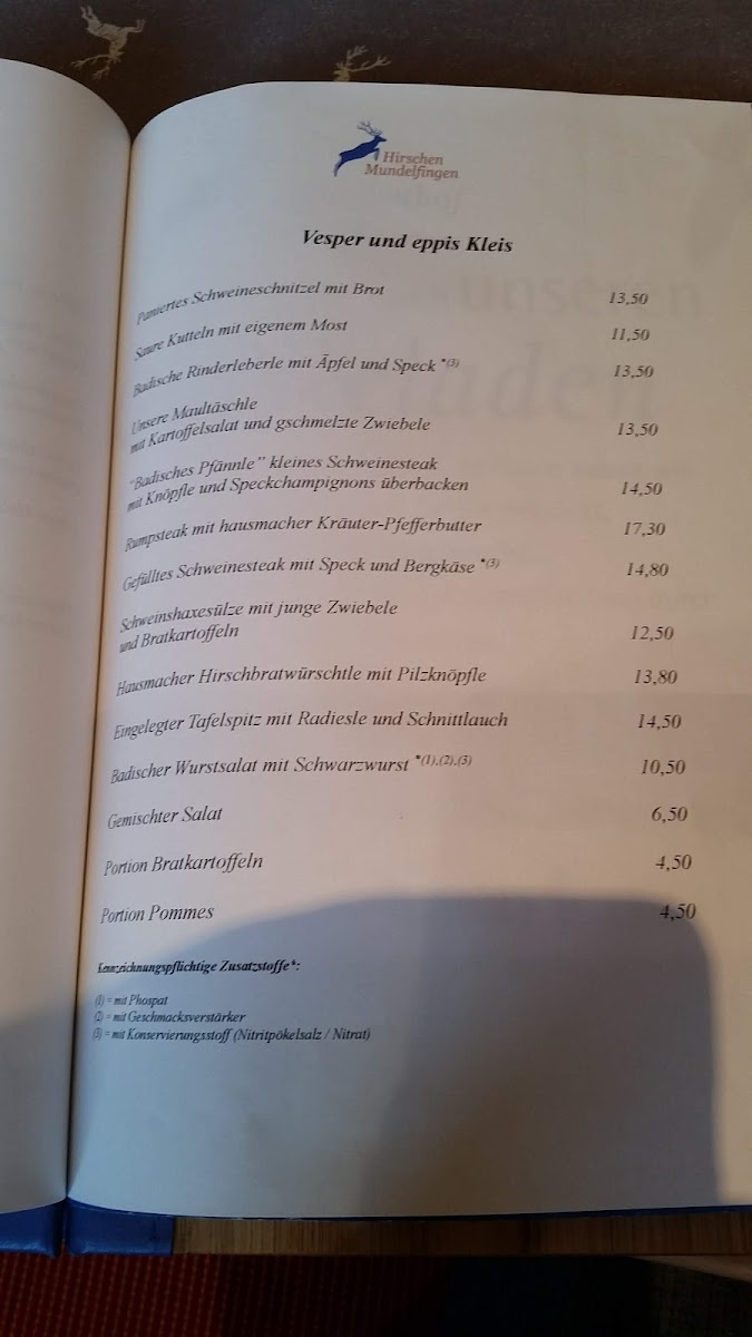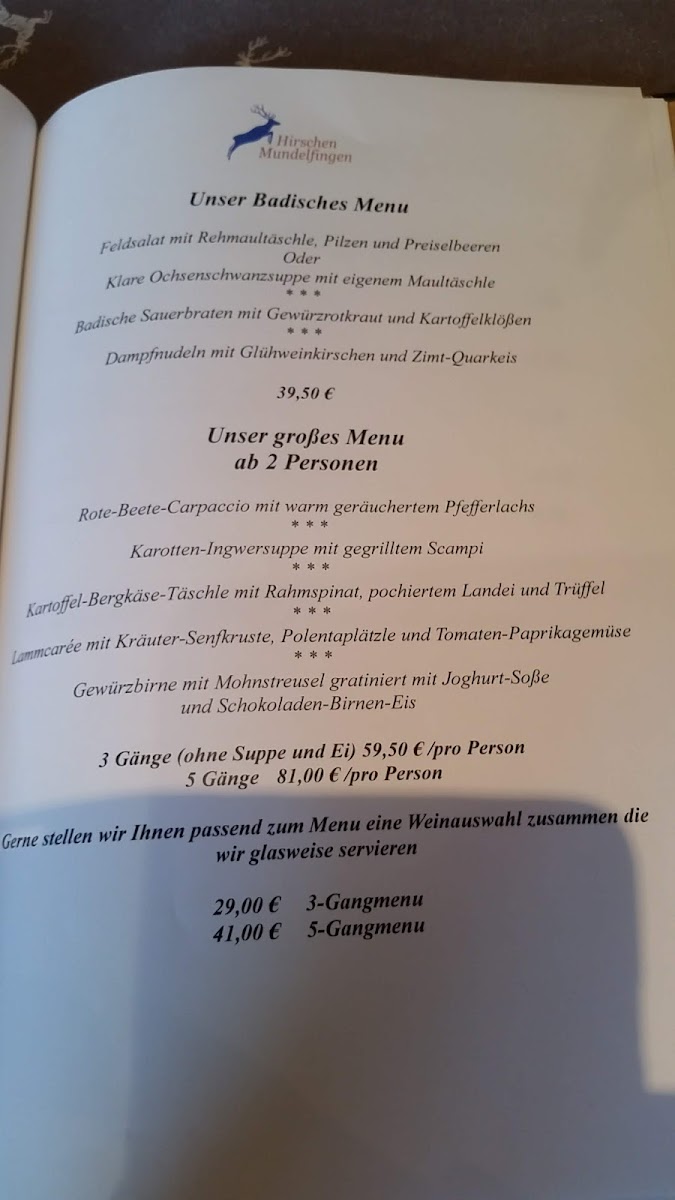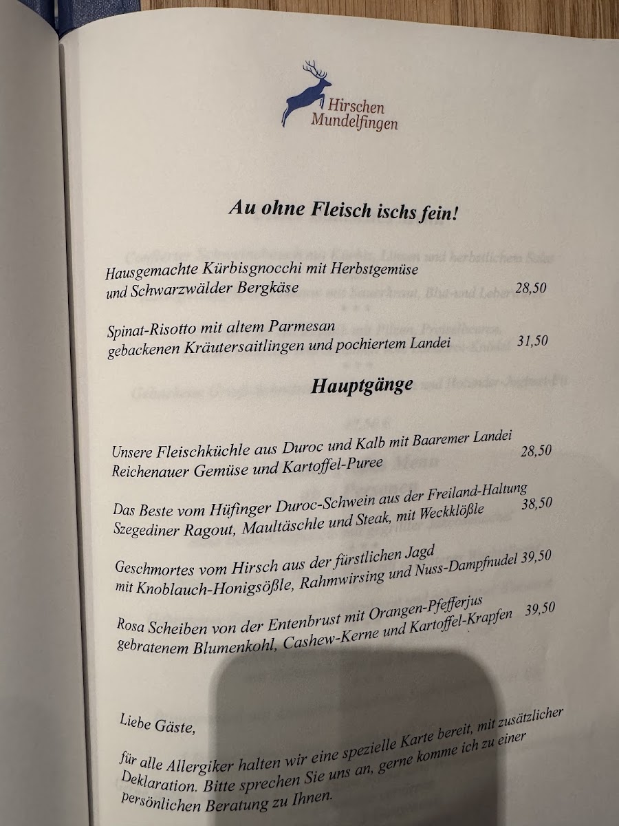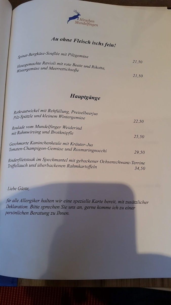 Overall, the menu at Landgasthof Hirschen is a wonderful mix of traditional German flavors, with something for everyone-from rich meat dishes to fresh salads and delicious desserts.