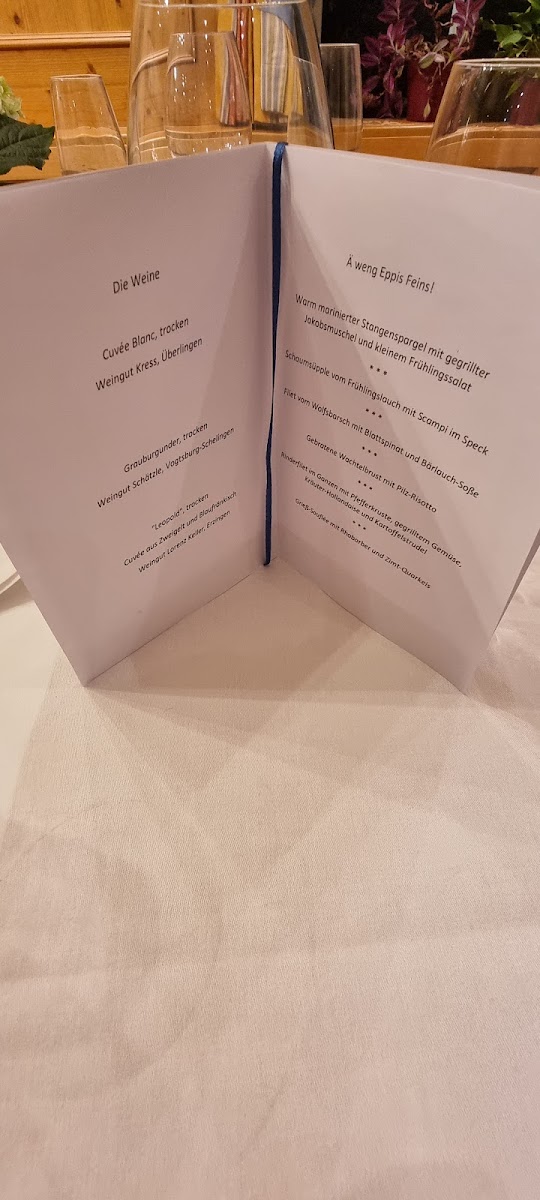 The menu at Landgasthof Hirschen offers a delightful variety of traditional German dishes, each prepared with attention to detail and quality ingredients. For those looking for a comforting starter, the Onion Soup is a classic choice, while the Schaumsüpple Vom Frühlingslauch Mit Scampi Im Speck brings a sophisticated blend of spring leeks and prawns wrapped in bacon for a unique flavor experience.